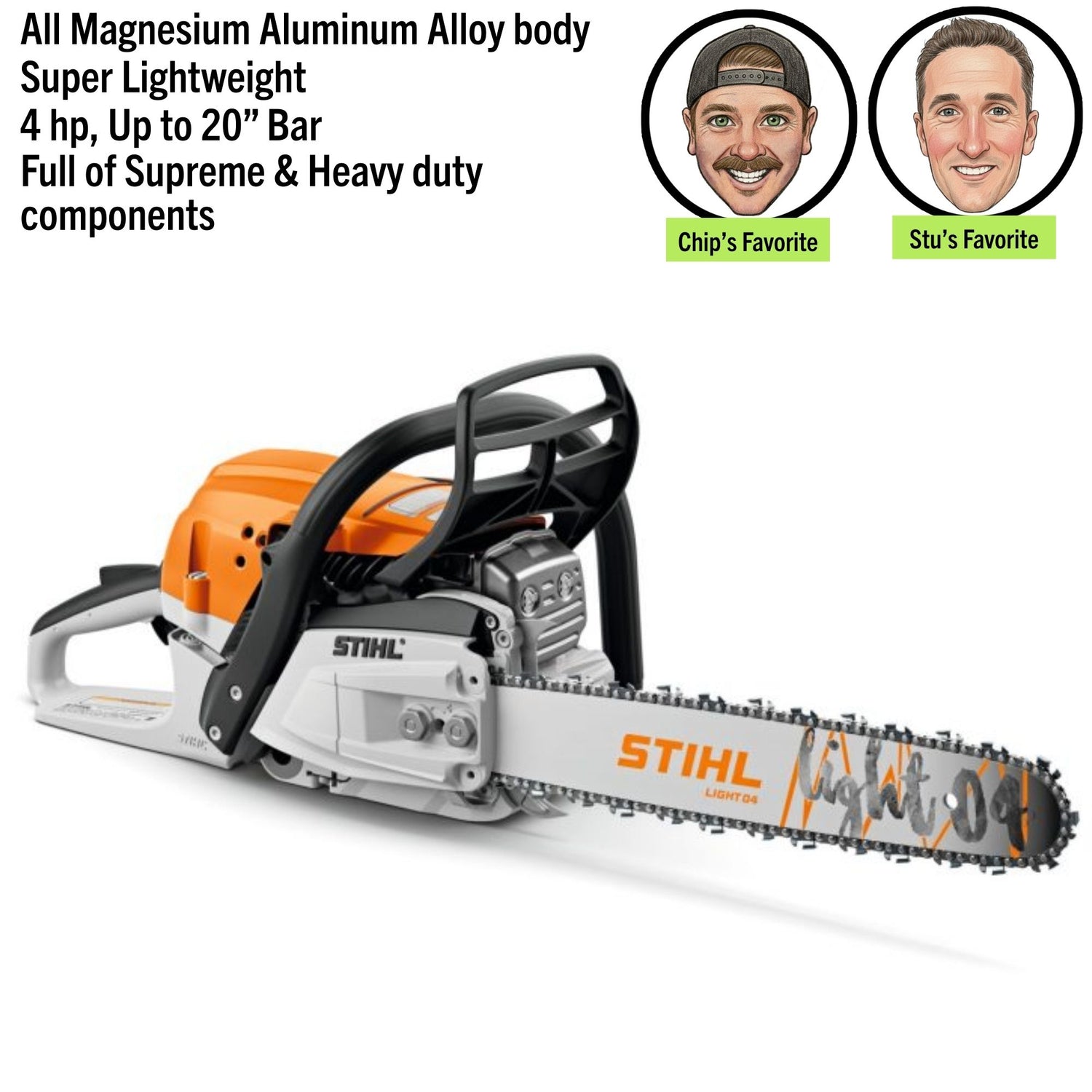 This chainsaw offers an optimized power-to-weight ratio, great fuel efficiency and convenience features.