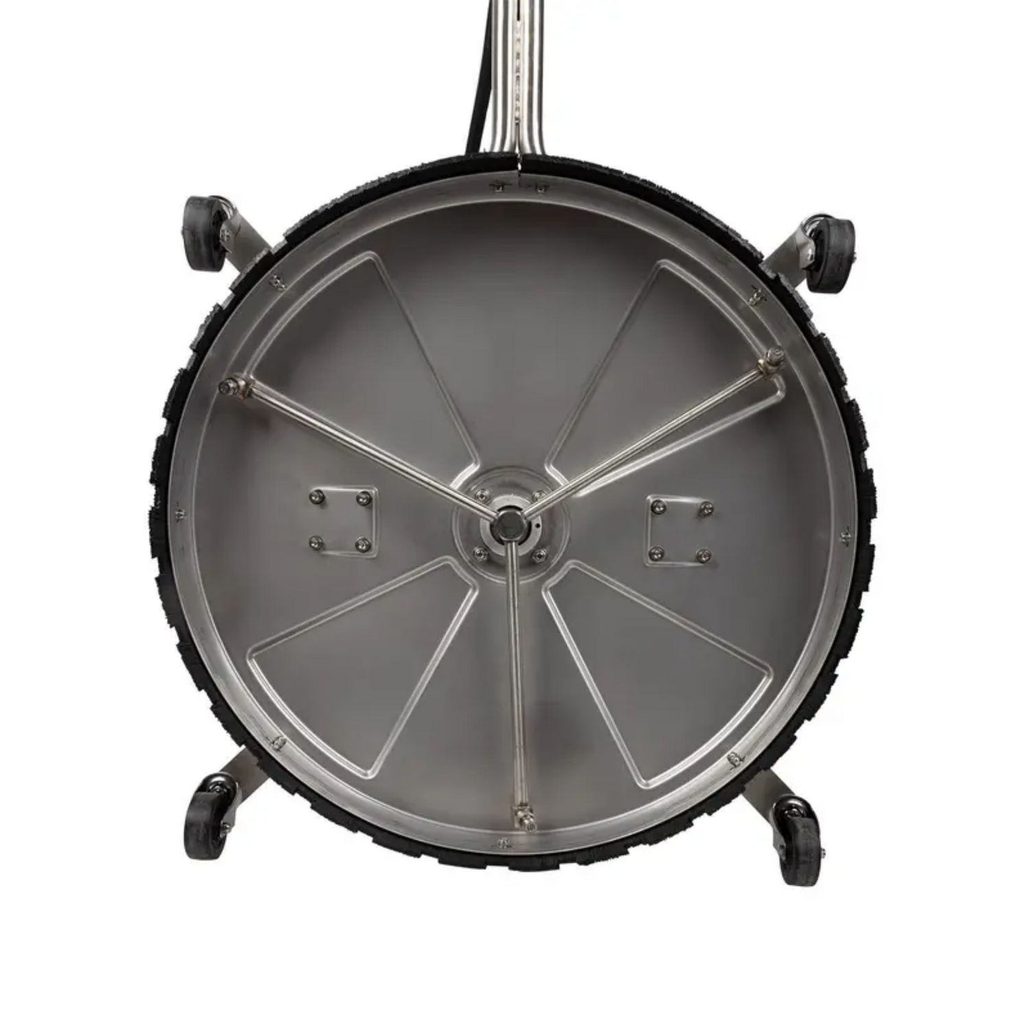 Four swivel casters allow the whirl-a-way to glide over flat surfaces maintaining a consistent height for the spray nozzles to be as effective as possible.