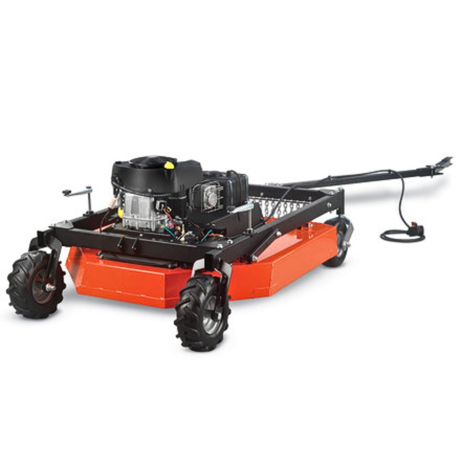 All the power of our legendary walk-behind brush mowers in a nimble tow-behind. Hitch it to your ATV or lawn tractor and reclaim overgrown land. Take down 3" saplings and mow the thickest field grass while you ride.