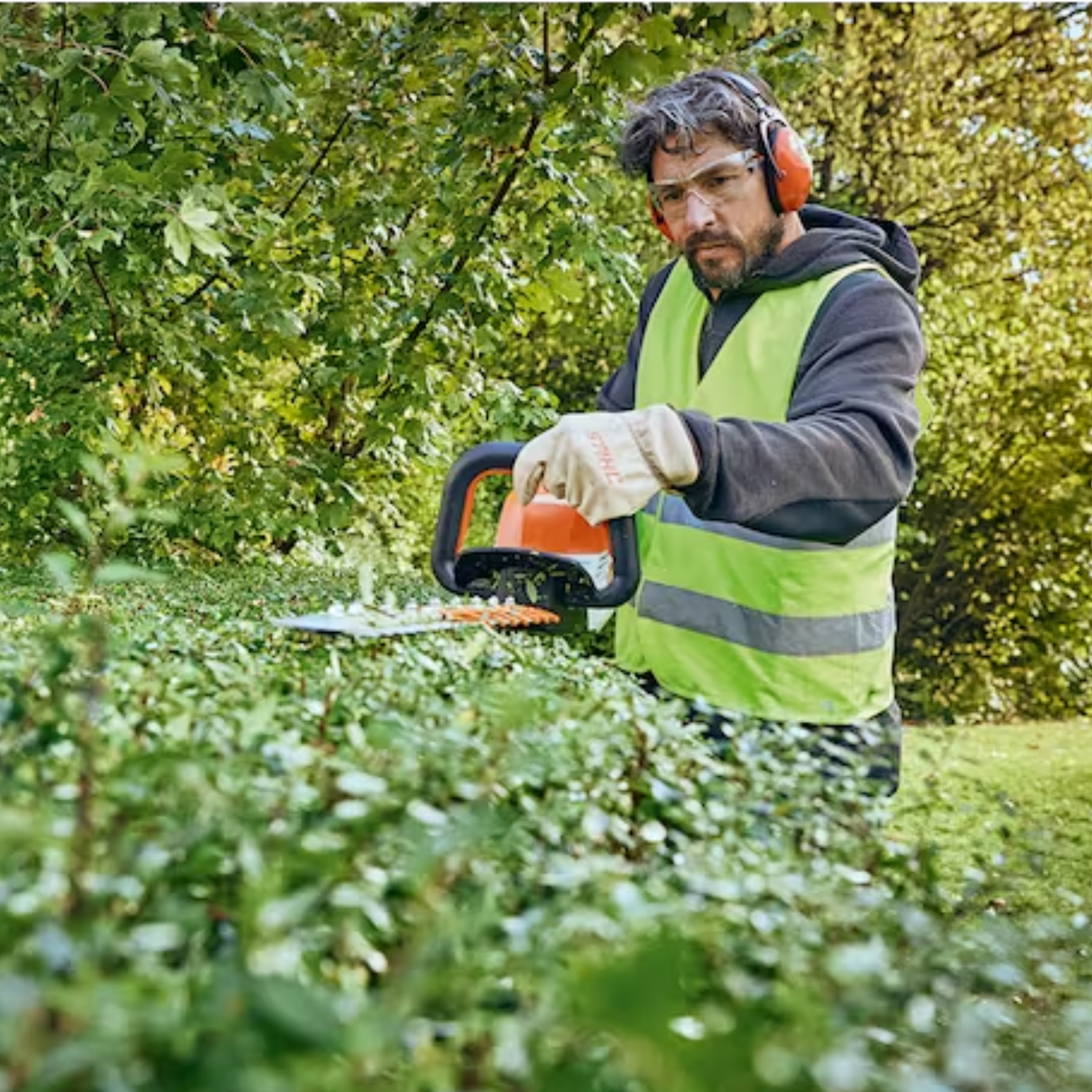 STIHL hedge trimmers with double-sided cutting blades cut both directions.