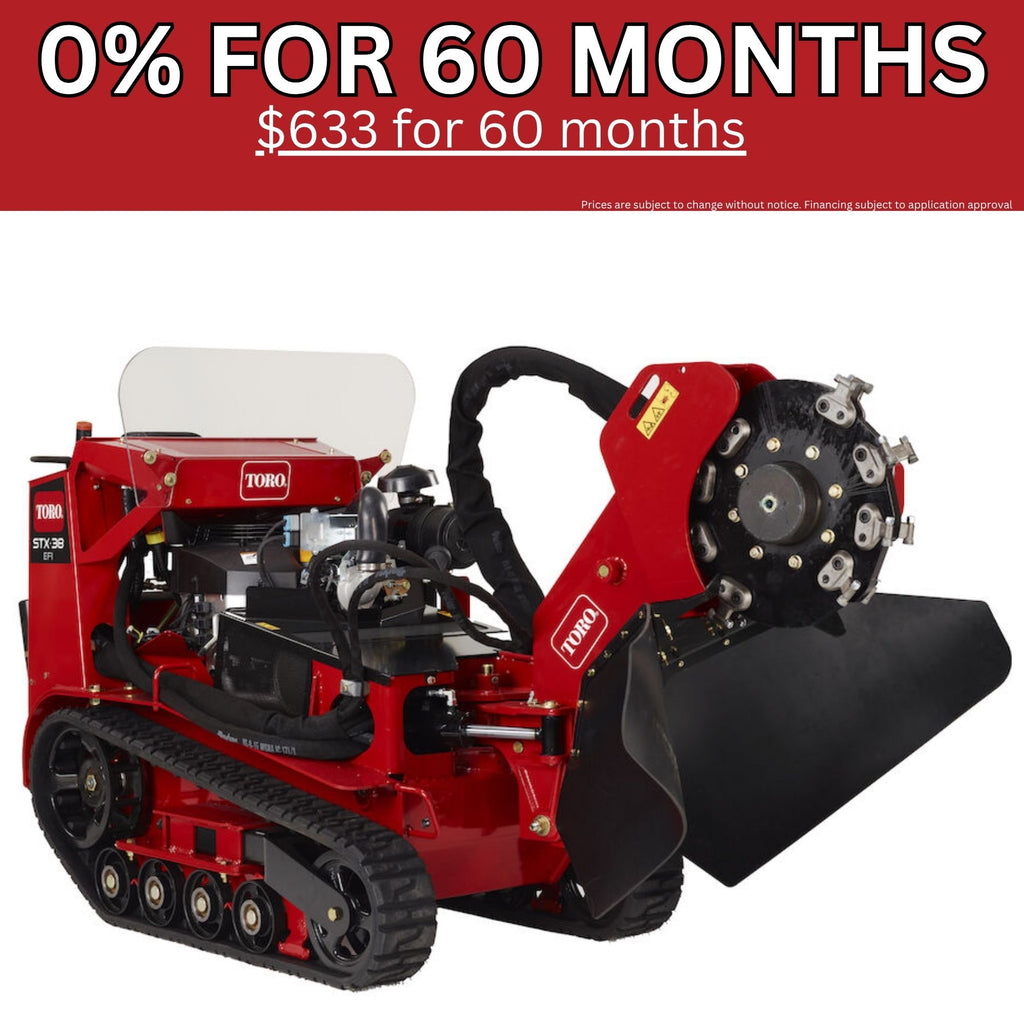 Toro® STX-38 Stump Grinder is built for outstanding durability in the toughest conditions. Fully hydraulic operation means no chance of expensive belts breaking or slipping and no tension adjustments. The Intelli-Sweep® feature automatically slows the sweep speed of the cutting head based on the load of the wheel, so heavy cutting loads won’t bog down the engine. And with easy-to-use TX-style controls and tracks for maneuverability and stability, the STX-38 is extremely operator-friendly. The STX-38's electronic fuel injection engine provides less maintenance, easier starting, and improved performance. Best of all, ground speeds of 4.5 mph allow you to spend more time grinding — and less time transporting the machine — for greater productivity.