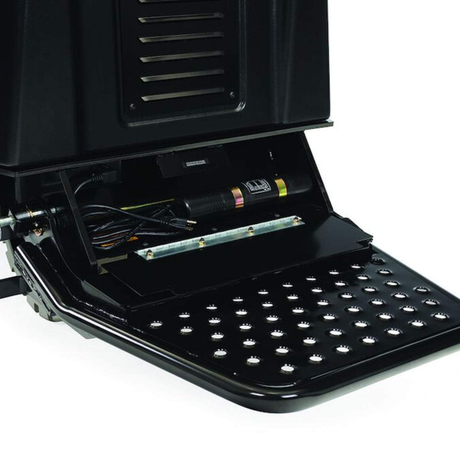 - Compact footprint easily clears hard to reach areas.